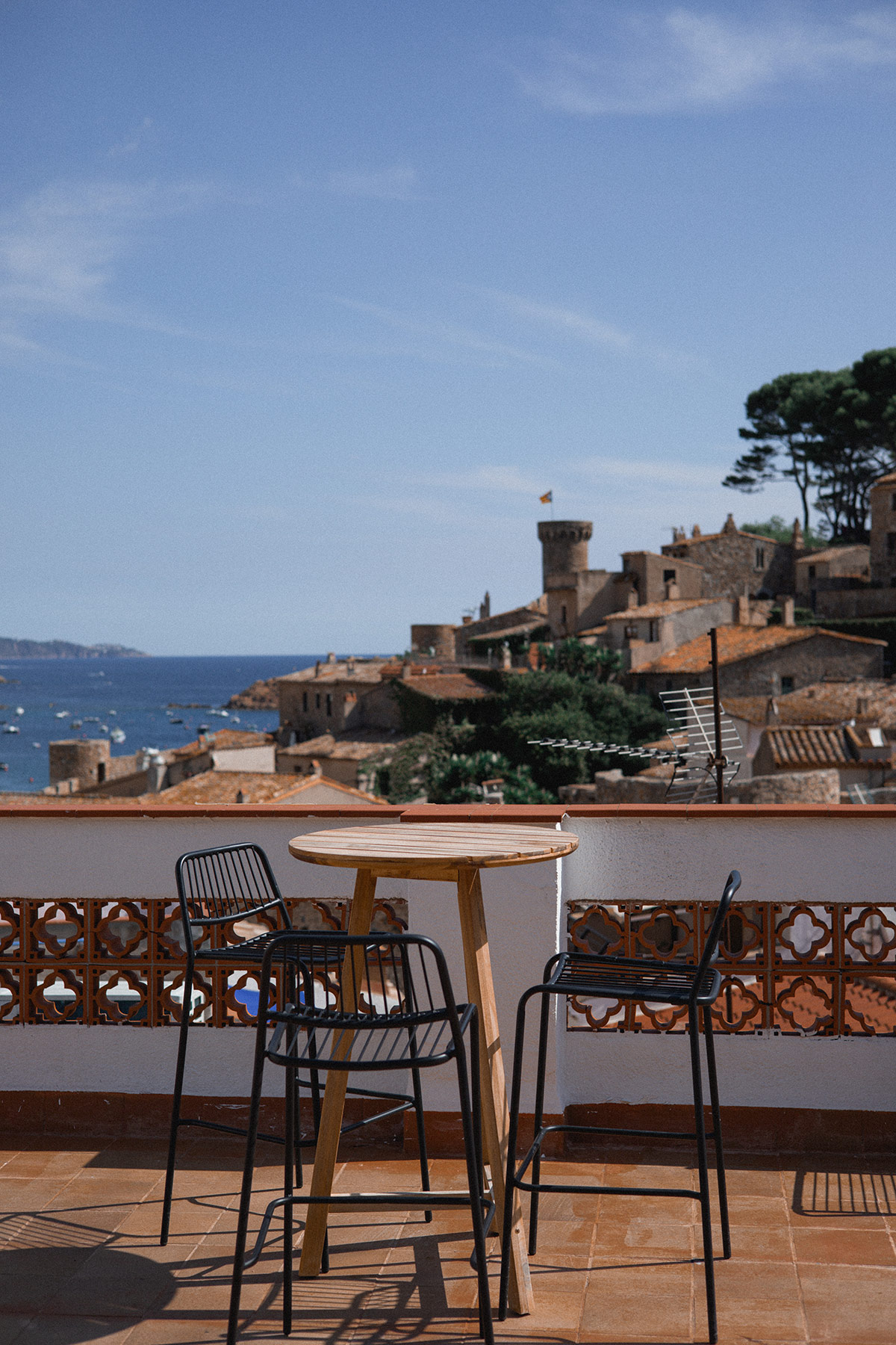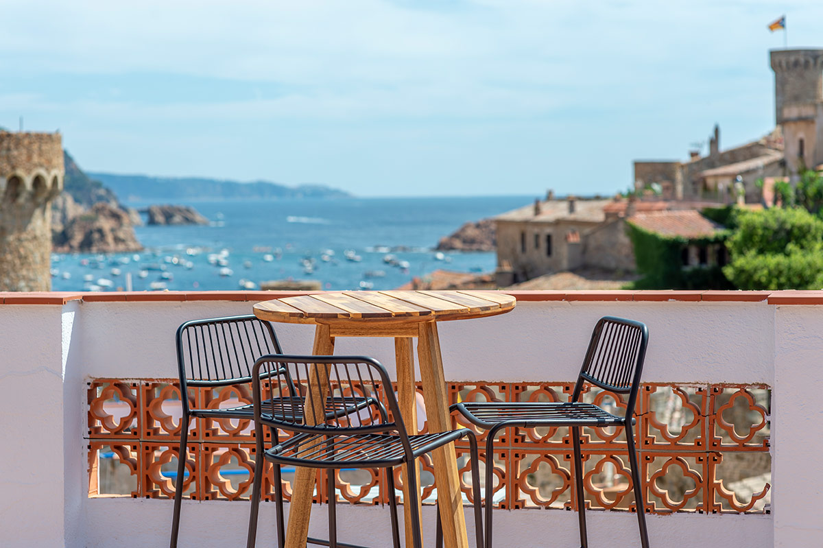 Gaudeixin de les espectaculars vistes que hi ha des de la terrassa de l’hostal a la Vila Vella, la Muralla de pedra que s’alça al costat de les seves torres de vigilància, la platja Gran i al fons la Cala Menuda, els captivaran. El seu entorn íntim i privat i la seva excel·lent ubicació, no els deixaran indiferents, ja sigui amb els primers raigs del sol com a la llum de lluna.